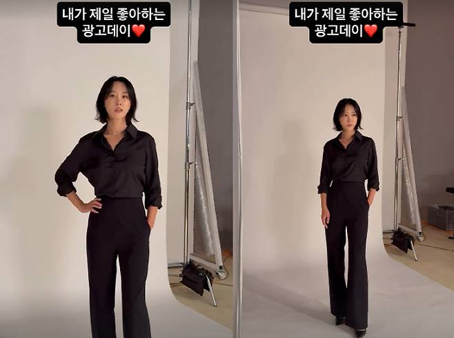 사진 속에는 광고 촬영 중인 이지혜의 모습이 담겨있다. 셔츠에 슬랙스를 착용, 올 블랙으로 맞춰 입고 그동안 선보였던 발랄한 매력이 아닌 시크한 매력으로 반전 분위기를 선보이고 있는 이지혜. 자연스러운 포즈와 표정에서 프로패셔널한 면모가 느껴졌다.
