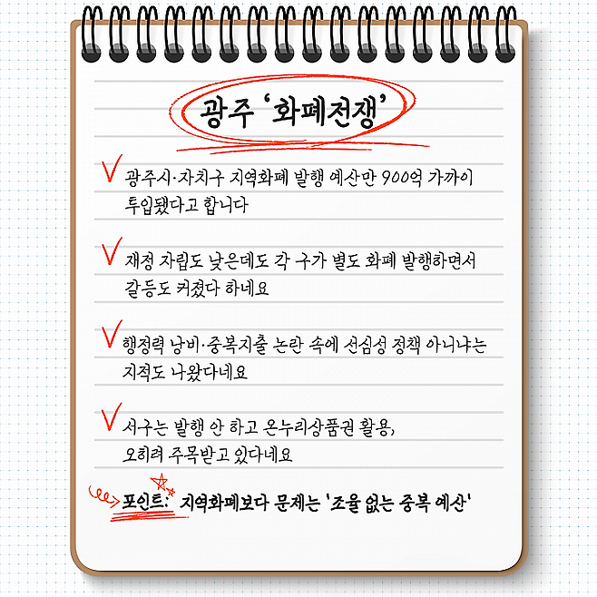 ✅ 포인트: 지역화폐보다 시급한 건 '조율 없는 중복 예산' 문제라는 거!