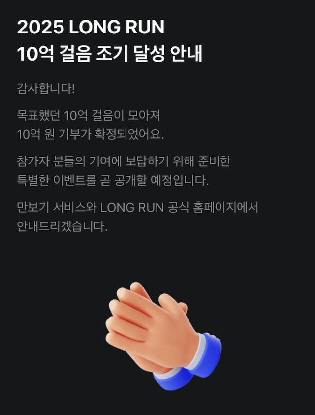 "목표치 10억 걸음 조기 달성"