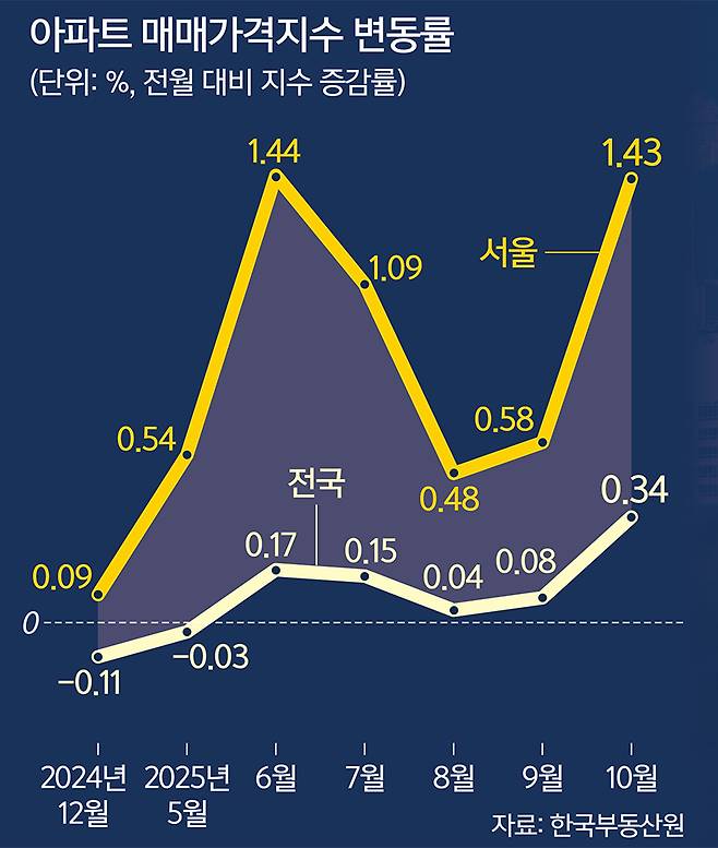 서울의 10월 아파트값 상승률이 두드러진 건 10·15 규제가 예고됐던 만큼 규제 발표 전에 아파트를 매수하려는 수요가 폭발한 영향이 큰 것으로 보인다. 그러나 이후에도 재건축 단지를 중심으로 ‘똘똘한 한 채’를 매수하려는 실수요 움직임이 계속되고 있다.
