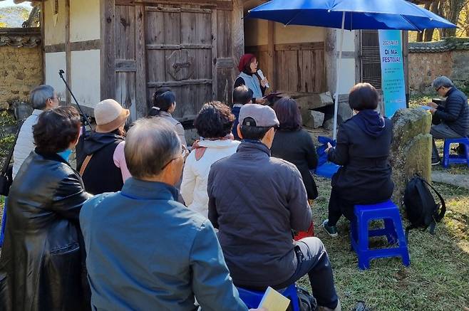 경남 고성은 '디카시 발원지'라 할 수 있다. 지난 15일 고성 장산숲과 죽사갤러리에서는 "제1회 디카시 마니아 '디-마(DI·MA)' 축제"가 열렸다. 온라인 커뮤니티 다음 카페 '디카시 마니아'가 창립 21주년을 맞아 축제를 연 것이다.