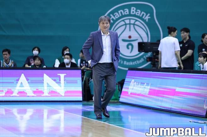 이상범 감독이 WKBL 첫 경기에서 승리를 따냈다.