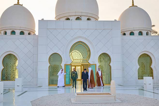 | ▲ 아랍에미리트(UAE)를 국빈 방문 중인 이재명 대통령이 17일(현지시간) 아부다비에 위치한 셰이크 자이드 그랜드 모스크를 방문해 사원을 둘러보고 있다. |