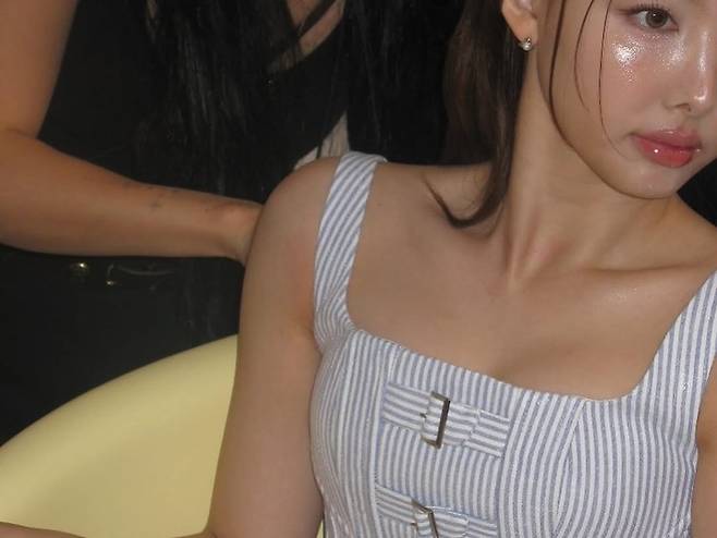 공개된 사진 속 나연은 스트라이프 패턴의 원피스를 입고 포니테일 헤어스타일과 광택감 있는 메이크업으로 청량하면서도 세련된 이미지를 자아냈다.