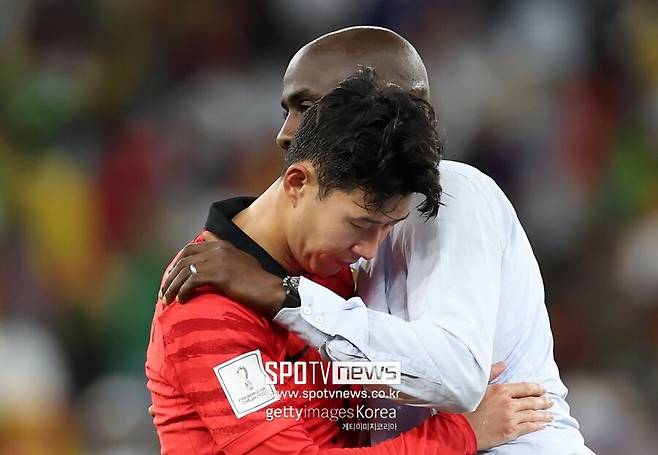 이러한 손흥민에게 다가간 아도 감독은 포옹을 하며 위로를 건네기도 했다.