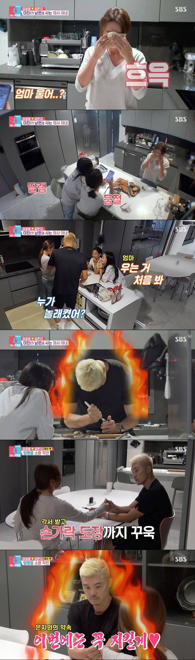 아이들과 은밀한 거래를 마친 김영광은 거실로 나가 게임을 했다. 그리고 이를 본 김은지는 "게임 1시간만 하기로 했잖아"라며 화를 냈다. 하지만 김영광은 아내의 말을 듣지 않았고 도리어 아내가 말을 걸어 게임에서 죽었다며 화까지 냈다.
