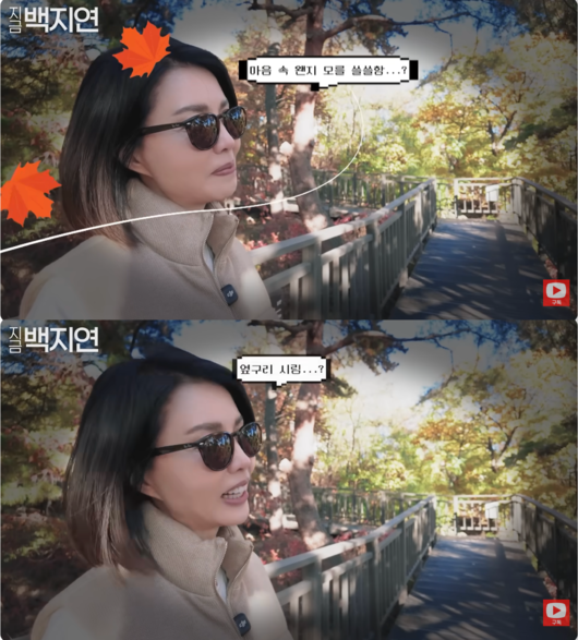 또한 백지연은 "이렇게 아름다운 가을 날씨에 내 주변에서 조금만 걸어 나가면 바로 남산에 이렇게 아름다운 산책로가 있다. 이 계정을 충분히 만끽하고 나를 위해서 음식 준비해서 먹어도 보고 나를 위해 채워가는 시간 그거 꼭 가져가라. 안 하면 뺏기는 거다"고 전했다.