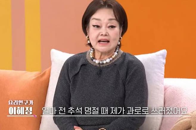요리 연구가 이혜정이 과로로 쓰러져 중환자실에 입원했다.