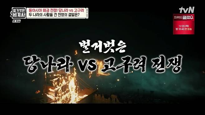 11월 17일 방송된 tvN <벌거벗은 세계사>에서는 '동아시아 패권전쟁, 당나라 VS 고구려'편이 그려졌다.