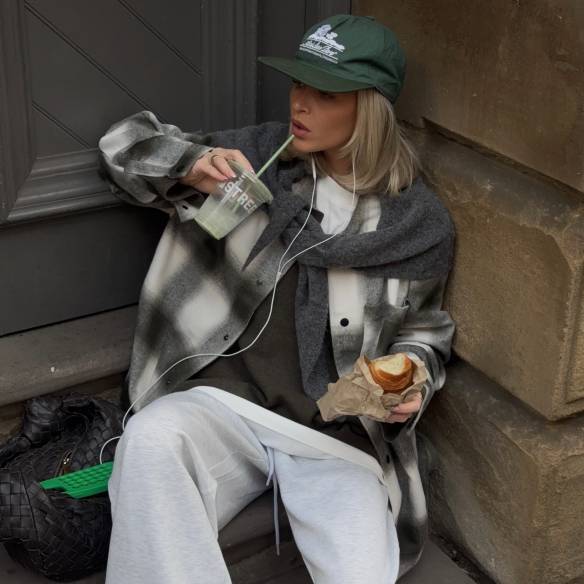 지난해 스웨트 팬츠 위 두꺼운 워머를 신는 모습이 자주 보였다면, 올해는 플랫 슈즈 를 활용한 스타일링이 주목 받고 있습니다. 소셜 미디어 속 패셔니스타들이 마치 약속이라도 한 듯 그레이 컬러 스웨트 팬츠에 디테일이 근사한 발레리나 슈즈를 매치하고 있으니까요.