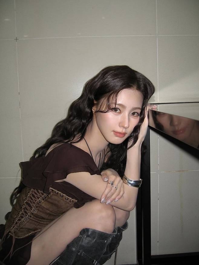 공개된 사진 속 미연은 브라운 톤 코르셋 톱과 러플 숄더로 보헤미안 무드를 연출, 히피펌에 가까운 물결 웨이브 헤어와 실버 악세사리로 포인트를 더했다.