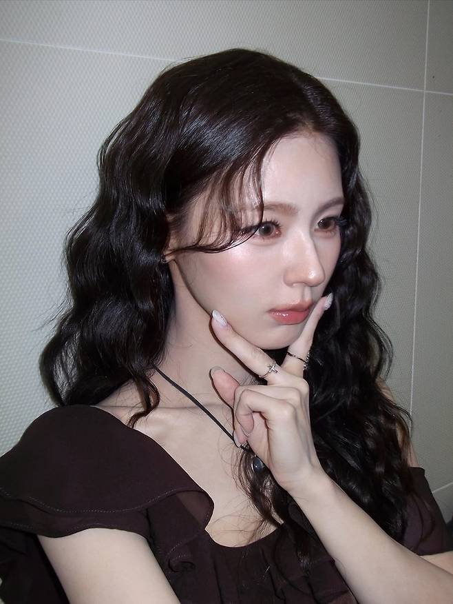 카메라에 바짝 다가선 클로즈업 샷에서도 콧대가 또렷하게 살아나 '외국인 비주얼'이라는 반응을 이끌었다. 특히 살짝 기댄 포즈로 드러난 매끈한 턱선과 입꼬리를 올린 윙크 컷은 사랑스러운 매력을 극대화했다.