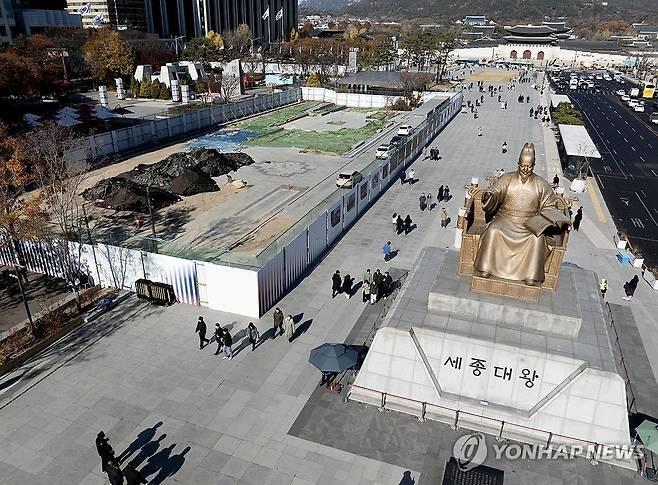 사진은 18일 서울 광화문광장 세종대왕상 인근에 조성되고 있는 감사의 정원 공사 현장의 모습. 2025.11.18