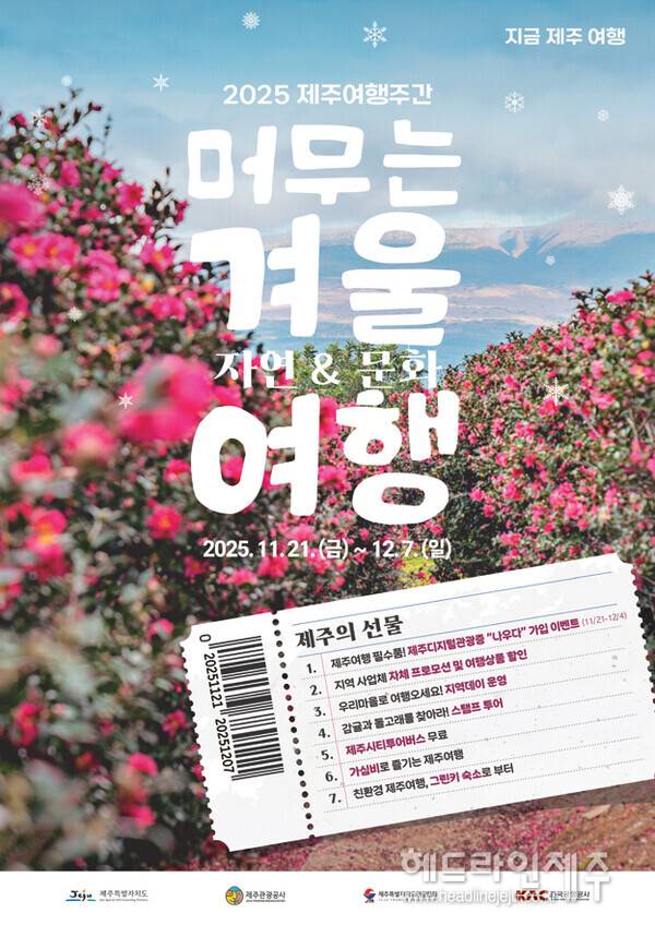제주특별자치도가 오는 21일부터 다음달 7일까지 17일간 겨울의 정취를 담은 '2025 지금, 제주여행-겨울시즌'을 운영한다.