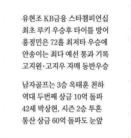 이색 우승자들도 골프 팬의 관심을 받았다. 첫 기록은 '최초 단일 시즌 자매 동시 우승'. 언니 고지우가 맥콜모나 용평오픈에서 우승을 차지했고, 동생 고지원은 제주에서 열린 2개 대회를 모두 싹쓸이했다.