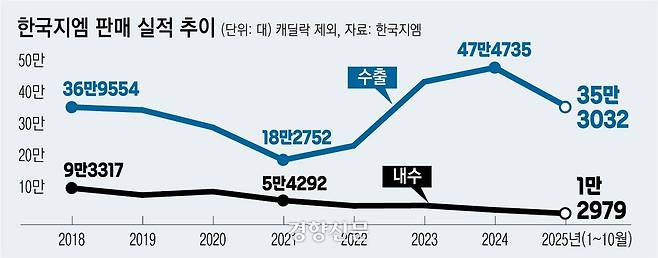 한국지엠에 따르면 2018년 9만3317대였던 내수 판매량이 지난해 2만4844대로 줄어든 상태다. 올해도 지난 10월까지 누적 판매량은 1만2979대 수준에 머물고 있다.