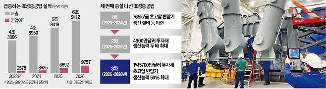 과감한 투자는 ‘신의 한 수’가 됐다. 노후 전력기기 교체 수요에 AI 붐이 부른 신규 수요가 더해져 ‘변압기 슈퍼사이클’(초호황)이 지속되고 있어서다. 2020년 441억원에 그친 효성중공업 영업이익은 지난해 사상 최대인 3625억원으로 불어났다. 올해 영업이익은 6700억원에 달할 전망이다.