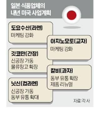 일본 식품사들은 대미 투자도 대폭 늘리고 있다. 아지노모토는 냉동식품 분야에서 새로운 유통 채널 확보에 나섰다. 닛신식품은 미국 사우스캐롤라이나주에 제3공장을 건립 중으로 올해 말 가동할 예정이다. 간장으로 유명한 깃코만도 북미 물류센터를 확대하고, 내년 가동을 목표로 북미 제3공장을 건설하고 있다.