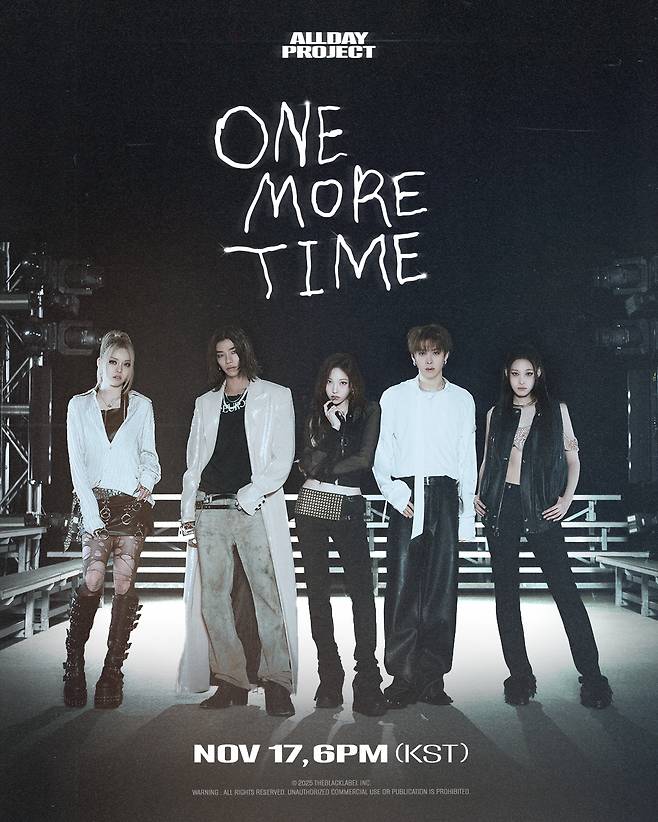 올데이프로젝트는 지난 6월 데뷔와 동시에 신드롬을 일으킨 팀이다. 멤버 애니가 이명희 신세계 총괄회장의 외손녀이자, 정유경 신세계 회장의 장녀라는 이유로 초반 이슈몰이를 하기도 했지만 이들의 음악과 퍼포먼스가 대중의 마음을 꿰뚫었다. 데뷔곡 '페이머스'는 데뷔 4일 만에 멜론 '톱100' 정상을 차지했고, 음악방송에서도 무려 3관왕을 휩쓸며 2025 최고의 신인임을 입증했다. '원 모어 타임'은 이런 올데이프로젝트가 5개월 여만에 공개하는 신곡인 만큼 또 한번 차트 뚫기에 성공할 수 있을지 기대가 쏠리고 있다.