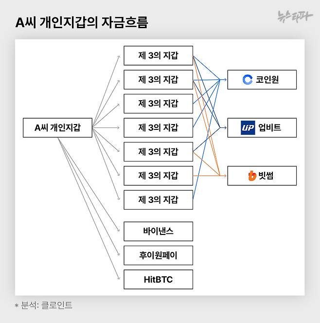 뉴스타파는 캄보디아 조직원인 A씨가 실소유한 개인 지갑의 자금 흐름을 좀 더 면밀히 분석하기 위해 국내 가상자산 분석 업체인 ‘클로인트’에 분석을 의뢰했다. 분석 결과, A씨의 지갑은 캄보디아 금융회사 ‘후이원페이’에서 발급받은 것으로 확인됐다.