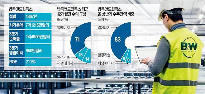 B&W는 올 상반기 840만달러의 영업이익을 냈다. 작년 상반기 350만달러 영업손실을 낸 것과 비교하면 극적인 반전이다. 상반기 말 수주 잔액은 4억1810만달러로 작년 동기 대비 49% 불어났다. 3분기엔 3510만달러 순이익을 내며 작년 대비 흑자로 전환했다. 케네스 영 B&W 최고경영자(CEO)는 “AI 데이터센터와 관련 산업 수요 덕에 각 사업 부문에서 수주가 늘고 있다”며 “올 하반기에도 이 같은 추세가 이어질 것”이라고 했다.