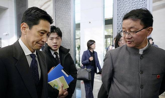 류 사장은 기자들과 만나 협의 결과에 대해 “당연히 만족하지 않는다. (분위기는) 엄중했다”고 말했다. 가나이 국장은 답변을 피했다.