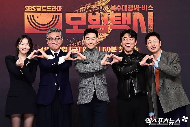 SBS 새 금토드라마 '모범택시3' 제작발표회가 18일 서울 목동에서 열렸다. 현장에는 강보승 감독을 비롯해 배우 이제훈, 김의성, 표예진, 장혁진, 배유람이 자리했다.