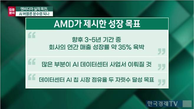 강정수 블루닷AI 연구센터장은 18일 한국경제TV에 출연해 "웰스파고가 제시한 AMD 주가 45% 상승 여력은 전혀 과장이 아니다"며 "엔비디아가 독점할 수 없을 정도로 AI 데이터센터 수요가 폭발하고 있어 AMD 성장 스토리가 더욱 부각될 것이다"고 말했다.
