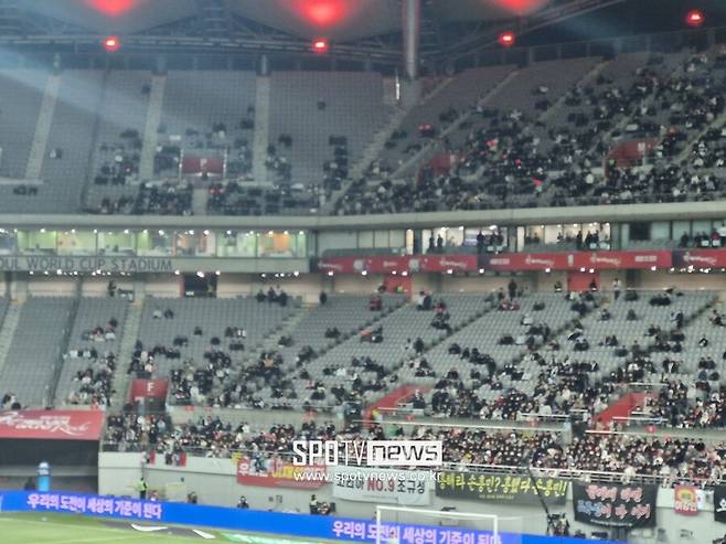 사실 경기 전부터 흥행 참패는 어느 정도 예고가 됐다. 티켓이 절반 넘게 판매되지 않으며 텅 빈 관중석이 예상됐고, 실제로 서울월드컵경기장을 찾은 관중 수는 현저히 적었다. 경기 시작 전 광장은 굉장히 한산했다. 이어 이날 관중석 역시 빈 곳이 가득했다.