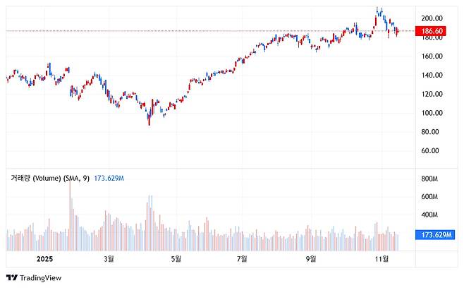 엔비디아 주가는 올들어 약 38% 상승했지만, 10월 말에 최고치를 기록한 이후 약 10% 하락했다.