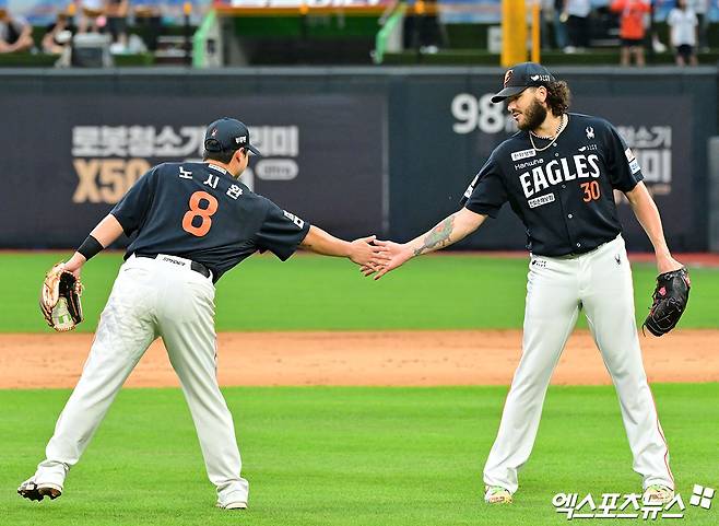 노시환은 올 시즌 144경기에 출전해 1262⅓이닝을 소화하며 올해는 물론 역대 리그로 봐도 기록적인 수치의 수비 시간을 가져갔다.