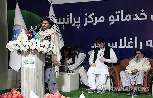 epa12534181 Deputy Prime Minister for Economic Affairs Mullah Abdul Ghani Baradar (L) speaks during the opening ceremony of a standard laboratory for testing the quality of agricultural products in Kandahar, Afghanistan, 18 November 2025. The facility, valued at around 2 million dollars and the first of its kind in the region, will assess product quality, diagnose plant diseases and certify goods to international standards, helping ease export challenges and improve access to foreign markets. EPA/QUDRATULLAH RAZWAN 101782