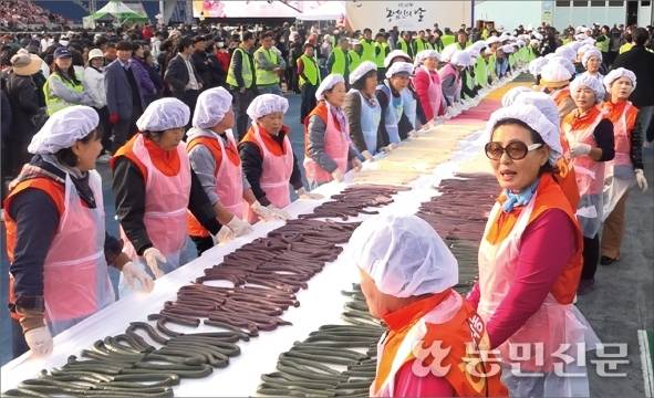 팔도 대표쌀로 빚은 오색 가래떡이 뽀얀 김을 뿜으며 장장 1㎞ 넘게 끊기지 않고 이어지는 모습은 그야말로 장관이었다.