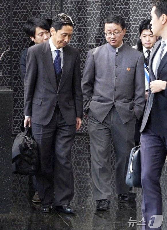 (베이징 로이터=뉴스1) 윤다정 기자 = 18일 중국 베이징에서 가나이 마사아키 일본 외무성 아시아·대양주국장이 류진쑹 중국 외교부 아주사장(아시아국장)과 대화를 나누고 있다. (교도통신 제공) 2025.11.18.