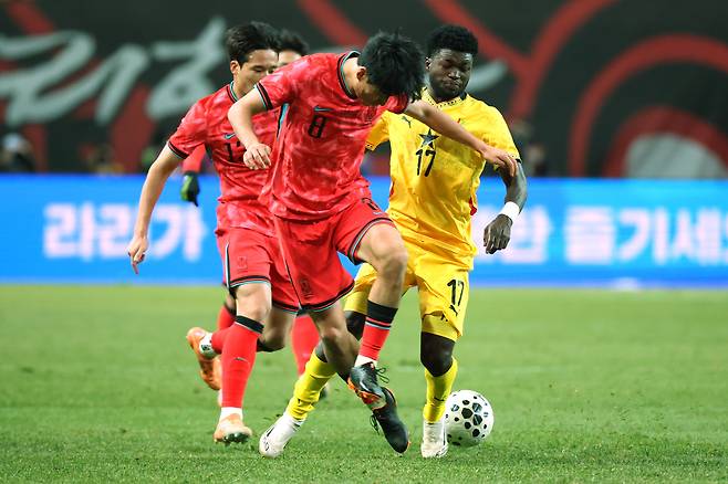 볼리비아전에서 김진규와 원두재 카드를 꺼내든 홍명보 감독은 가나전에선 유럽파 권혁규와 옌스 카스트로프를 중앙에 배치시켰다. 프랑스 리그1 낭트FC에서 뛰는 권혁규는 A매치 데뷔전이었고 9월부터 연이어 소집된 독일 분데스리가 묀헨 글라트바흐의 카스트로프는 백업 자원으로서 실험대에 오르게 됐다.