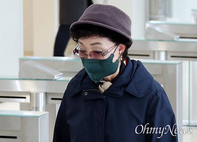 | ▲ 김건희 씨의 모친 최은순 씨, 김건희특검 출석 양평 공흥지구 개발 특혜 의혹과 관련해 전직 대통령 윤석열 씨의 부인인 김건희 씨의 모친 최은순 씨가 3일 오전 서울 종로구 김건희특검 사무실에 피의자 신분으로 출석하고 있다. |
