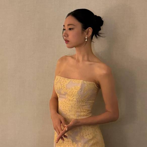 도대체 안은진은 안 어울리는 컬러가 무엇일까요? 핑크와 블랙을 넘나들더니 이번엔 옐로 색상의 드레스도 찰떡인 모습을 보여줍니다. 봄을 닮은 노란색 플라워 드레스에, 화이트 톤 네일까지. 머리부터 발끝까지 신경 쓴 패션이란 게 보이죠? 게다가 헤어 스타일은 번헤어로 높게 묶어 귀를 보이게 연출했는데요. 보이는 귀가 심심하지 않도록 짧은 드롭 이어링까지 매치했습니다. 어디 하나 부족한 게 없는 어워즈 패션이네요.