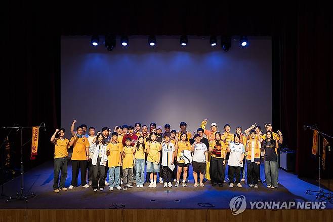 (광주=연합뉴스) 19일 프로축구 광주FC는 팬들의 목소리를 담은 신규 응원곡을 오는 20일 공개한다고 밝혔다. 사진은 응원곡 녹음에 참여한 팬들의 모습. 2025.11.19 [광주FC 제공. 재판매 및 DB 금지]