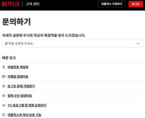 | ▲ 넷플릭스 코리아 문의 카테고리 |
