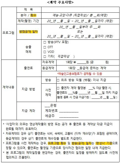 | ▲ 방송·영상 출연표준계약서(비드라마), 25.7.31 개정 |