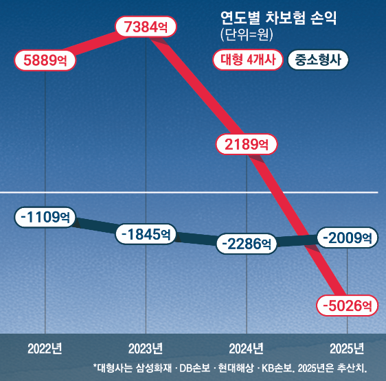 그러나 2023년 5월 코로나19 종식 이후 차량 운행이 다시 늘어난 데다 이상기후가 더 빈번하게 관측되면서 차 사고가 폭증했다. 작년 국내 차보험 업계가 적자로 전환된 이유다. 올해는 더 심각하다. 3월까지 이어진 한파와 폭설에 자동차 긴급 출동이 잦아지고, 여름에는 괴물폭우가 전국을 강타해 자동차 침수 사고가 수차례 발생했다.