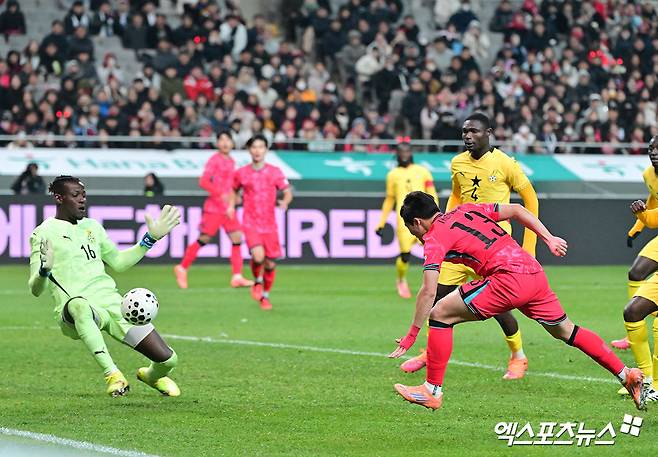 오른쪽 측면에 자리한 이강인은 반대편으로 정확한 크로스를 올렸고, 이태석이 골문 앞으로 쇄도한 뒤 머리에 맞춰 가나 골망을 가르면서 A매치 데뷔골을 터트렸다.