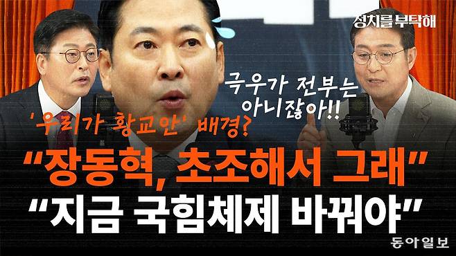 ▶ 김종혁: 그런데 지금 뭐 고민이 많죠 아마 장동혁 대표는 고민이 많을 겁니다. 왜냐하면 지금 당 대표가 된 지 벌써 몇 달이 지났습니까? 그런데 지지도가 뭐 전혀 올라가기는커녕 오히려 떨어지고 있는 양상을 보이니까 이게 도대체 뭐지. 라고 모두가 다 의아해하고 있는 건 분명하잖아요. 그러다 보니까 그런 초조감이나 강박관념이 오히려 더 더 강성 발언을 하게 되는 그런 배경이 아닌가 싶어요. 우리가 황교안이라고 하든가 아니면 뭐 그때 당시에 국정감사 할 때 우리가 여러 가지 김현지 이슈라든가 이런 걸로 굉장히 공격을 하고 있었는데 느닷없이 윤석열 전 대통령을 면회를 해서 그냥 김을 확 빼버린다라든가 이번에도 항소 포기와 관련해서 굉장히 기세 좋게 올라가고 있는 건데 그것도 무슨 본인들이 한 게 아니라 한동훈 대표가 지금 확 불을 질러서 간 거잖아요. 그런데 올라가고 있는데 갑작스럽게 우리가 황교안이다라고 얘기를 해서 그냥 방향을 확 틀어버리는 듯한 이런 여러 가지 전략적 미스테이크가 있어서 그것들 때문에 굉장히 지금 궁지에 몰려 있는 건 맞는 것 같아요. 그런데 이게 지금 우리 당내가 좀 복잡해요. 왜냐하면 송언석 그 원내대표가 우리 당에 윤석열 없다라고 얘기해서 또 공격을 엄청 당합니다. 지금 그 이른바 강성 우파들은 극우들이라는 분들은 뭐 얘 송언석이 이거 뭐야. 라고 하면서 또 공격을 하고 있거든요. 그래서 지금 제가 생각하기에는 결국은 우리당이 우리 당은 윤석열 전 대통령이나 김건희 씨하고 절연을 하고 그다음에 이건 잘못됐다 잘못된 건 잘못된 거다라고 시인을 하고 그다음에 무슨 다른 공격을 하든가 방어를 하든가 왜냐하면 민주당도 문제가 많잖아요. 지금 동의 안 하시겠지만 민주당도 문제 많아요. 그러면 우리가 잘못한 것은 이건 잘못했으니까 아 잘못했습니다라고 얘기하고 그런데 저거 잘못한 거는 이건 우리 지적해야겠어요라고 나올 때 사람들이 아 그래도 쟤네는 좀 합리적이네 그래 니네 뭐 잘못한 거 있지만 저쪽 잘못하는 건 너네도 비판할 수 있지. 라고 받아들이는데 우리가 잘못한 게 없다라고 주장을 하고 있으면 그리고 아무리 비판해도 지금 그 중도층에 있는 분들을 만나면 그래 맞아 민주당 엉망이지 나뻐. 그러고 막 하다가 그런데 국민의힘 지지하기 힘들어 이렇게 나온단 말이에요. 그러니까 이거 진짜 현장에서 그런 분들을 만나면 속된 말로 정말 미치고 팔짝 뛸 일이죠. 이게 뭐야 도대체 이런 생각이 드는데 이런 것들에 대해서 당 지도부가 좀 고민을 해 줘야 되는데 이 고민을 안 하시는 것 같아서 참 안타깝습니다.