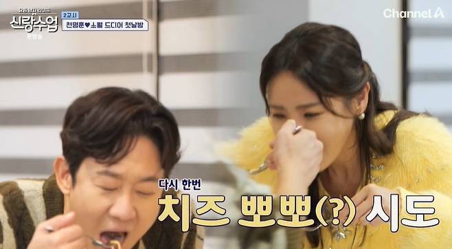 이어 치즈를 만드는 체험을 하러 간 천명훈과 소월. 천명훈은 계속 두 사람에 대해 자랑했고, 이다해는 "우리 둘에 대해 계속 얘기하는 거 좋지 않냐. 치즈만 만들면 그것도 별로"라고 말해주었다. 천명훈은 소월에게 치즈를 먹여주다가 자기의 입으로 반대쪽을 가져가려 했다. 하지만 치즈가 미끄러졌고, 눈치챈 소월은 바로 고개를 돌렸다. 천명훈은 "실패했어. 다신 못 해. 망했어"라고 안타까워했다. 이후에도 천명훈은 피자가 나오자 한 번 더 시도했지만, 소월은 "으악"이라며 뒤로 물러났다.