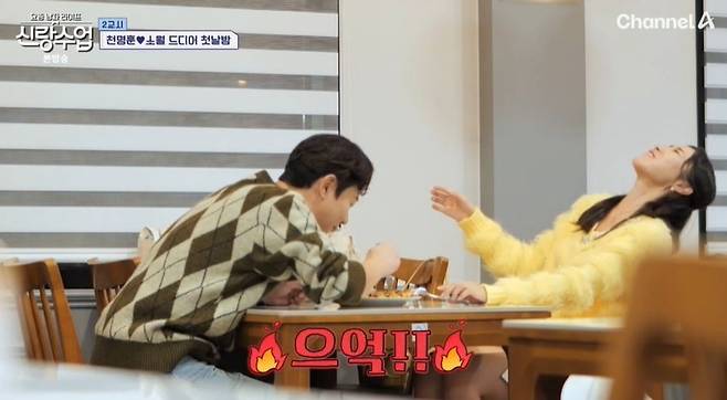 [TV리포트=남금주 기자] 천명훈이 소월에게 치즈 뽀뽀를 시도하다가 실패했다.