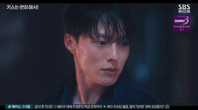 19일 방송된 SBS 수목드라마 '키스는 괜히 해서!'에서 고다림(안은진 분)을 보고 혼란스러워하는 공지혁(장기용 분)의 모습이 전파를 탔다.
