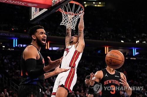 마이애미 히트는 18일(한국시간) 미국 플로리다주 마이애미 카세야 센터에서 열린 2025-2026시즌 NBA 정규리그 뉴욕 닉스와의 경기에서 115-113으로 승리했다.
