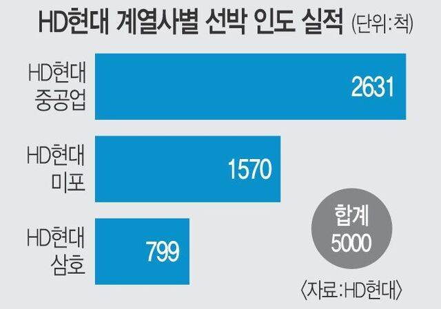HD현대가 전 세계 최초로 '선박 5000척 인도'라는 이정표를 세웠다.