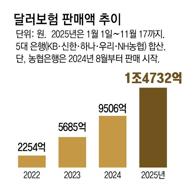 국내 투자자의 ‘달러 쇼핑’이 늘고 있다. 달러 기반 보험, 채권, 주식 등의 자산을 사들이거나 아니면 달러 자체를 모으는 투자다. 19일 원-달러 환율이 전 거래일 대비 0.3원 오른 1465.6원에 주간거래를 마치며 고공행진할 정도로 달러는 비싸지고 있다. 그럼에도 ‘포모(FOMO·소외 공포)’족들은 “달러가 더 비싸지기 전에 사자”며 달러 자산을 모은다. 과거 달러가 비싸지면 수요가 줄던 것과 달라진 영상이다.