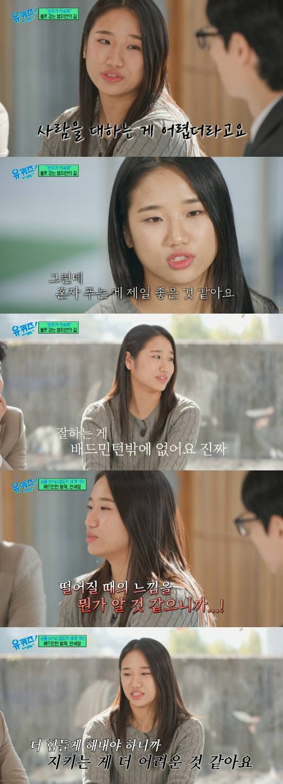 '유퀴즈'에서 안세영이 '세계 1위' 자리를 지키는 것에 대해 언급했다.